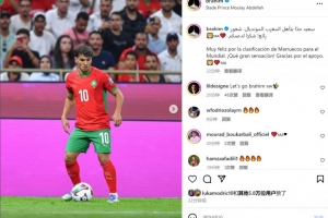 迪亚斯此役为摩洛哥首发出战,他在社交媒体上晒出比赛照片,配文:“为摩洛哥晋级世界杯感到无比欣喜,多么美妙的感觉!感谢大家的支持。”