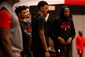 期待新赛季!火箭晒训练照:乌度卡指导谢泼德 杜兰特微笑倾听