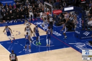 指哪儿打哪儿!詹姆斯三分线外灵犀一指 海斯起飞空接炸筐重扣
