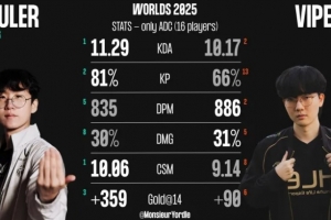 Ruler在KDA、参团率、分均补刀、14分钟对位经济差方面多项领先,而Viper在分均输出、伤害占比方面较为领先。