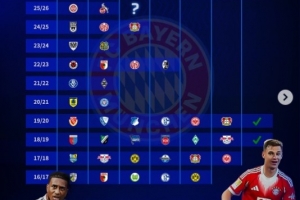 以下为拜仁近10个赛季在德国杯中的战绩: