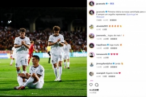 坎塞洛也在赛后通过社媒晒出自己致敬前队友若塔的庆祝照。他也配文道:“世界杯征程上的首场胜利!能为国出战一直都是我的荣幸。”