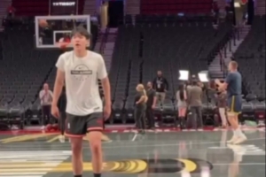 开拓者官推晒出杨瀚森赛前训练视频,官推写道:“训练直到偶像成为你的对手💪杨瀚森与约基奇同场训练,备战我们与丹佛掘金队的首场NBA杯比赛。”