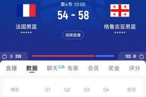 体育资讯9月7日讯 男篮欧锦赛1/8决赛,格鲁吉亚男篮三节打完58-54领先法国男篮。