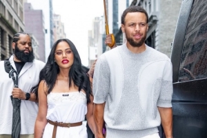 本场比赛,库里携妻子阿耶莎现场观战,并被惊出表情包。