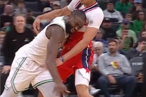 体育资讯11月6日讯 今天凯尔特人战胜鹈鹕的比赛中,杰伦·布朗发际线粉又粘到对手白T上了。