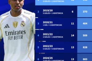 体育资讯11月8日讯 尽管皇马主帅阿隆索多次在新闻发布会上强调罗德里戈是球队阵中重要一员,但数据却显示了完全不同的情况。在进攻端,只有恩德里克和贡萨洛-加西亚比他出场时间更少。事实上,这是他加盟皇马以来前15场比赛出场时间最少的一个赛季。