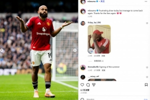 他也在赛后通过社媒晒出自己的摊手庆祝照,并配文:“今天的平局令人沮丧,但我们还是设法扳平了比分,再次感谢球迷们❤️❤️”。