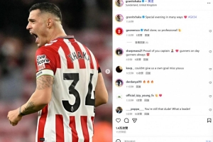 他本场比赛完成7次解围,也在赛后通过社媒晒出自己的怒吼庆祝照,并配文:“各方面而言都是特别的一夜 ❤️”。