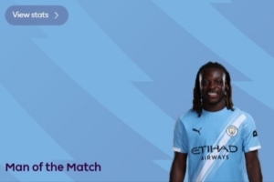 体育资讯11月10日讯 2025-26赛季英超第11轮焦点战,曼城3-0利物浦,赛后,多库当选英超官方评选的全场最佳球员。