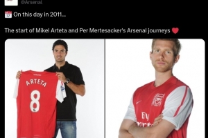 体育资讯8月31日讯 在2011年的今天,现任球队主帅阿尔特塔以及默特萨克开启了枪手生涯,阿森纳官推也晒出两人当时的照片作为纪念。