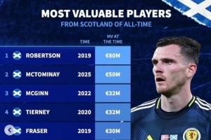 附苏格兰球员历史身价榜: