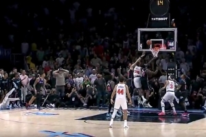 内线守不住!黄蜂追打申京 卡尔克布伦纳空接暴扣打进加罚