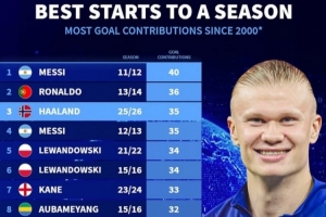 体育资讯11月19日讯 哈兰德在本赛季表现抢眼,数据统计显示他各项赛事为俱乐部和国家队已经直接参与35球,《转会市场》统计显示这也是新世纪单赛季同期参与进球第三多的纪录。