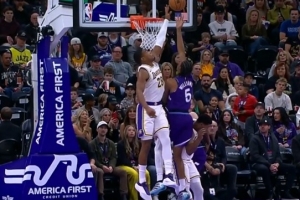 摧枯拉朽!米切尔送妙传 阿伦腾空暴起单臂炸裂劈扣