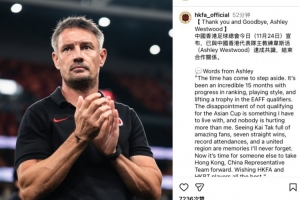 体育资讯11月24日讯 中国香港代表队今日官方宣布,球队主教练阿什利·韦斯特伍德下课。