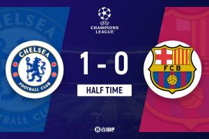 上半场伤停补时2分钟,半场结束,切尔西暂1-0巴塞罗那。