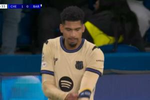 体育资讯11月26日讯 欧冠联赛阶段第5轮,切尔西半场1-0领先巴萨,巴萨本场首发队长阿劳霍第44分钟吃到本场第2张黄牌,两黄变一红被罚下场,巴萨落入半场一球落后+少打一人的困境中。