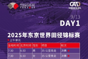 体育资讯9月12日讯 2025东京田径世锦赛赛程出炉,男子100米决赛将于北京时间9月14日晚上21:20进行。