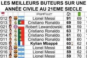体育资讯12月02日讯 2025年接近尾声,皇马前锋姆巴佩已经在本年度打进了60粒进球,在21世纪自然年进球榜可以排到并列第6位。