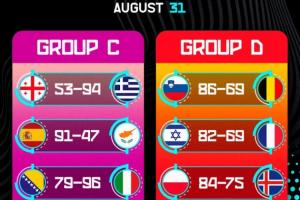 体育资讯09月01日讯 男篮欧锦赛当地时间8月31日的6场小组赛全部结束,详细赛果如下: