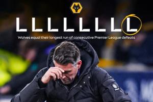 体育资讯12月04日讯 英超第14轮,狼队主场0-1不敌诺丁汉森林,各赛事遭遇8连败,其中英超7连败!