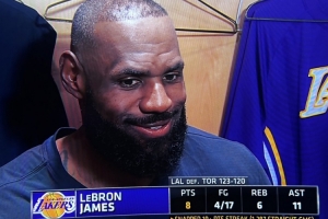 体育资讯12月5日讯 NBA常规赛,湖人123-120猛龙。赛后詹姆斯接受了采访。