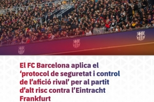 体育资讯12月8日讯 巴萨发布官方公告,12月10日4点在诺坎普球场对阵法兰克福的欧冠比赛被列为“高风险赛事”,俱乐部已启动严格的安保管控方案。