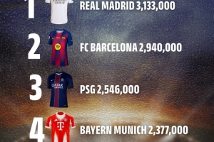 迈阿密国际如今已与皇马、巴萨、巴黎圣日耳曼和拜仁慕尼黑并肩,组成全球最顶级的球衣销售阵营。这五家俱乐部在2025年均售出超过200万件球衣。作为MLS冠军,迈阿密国际的销量达到2,166,000件,而这一切都源于梅西自2023年7月加盟佛罗里达以来所带来的巨大推动力。与此同时,葡萄牙球星C罗凭借强大的个人号召力,帮助利雅得胜利卖出1,281,000件球衣。