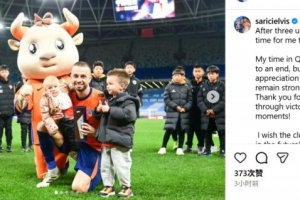 体育资讯12月15日讯 今晚,萨里奇更新社媒,向自己效力了三年的青岛海牛告别。