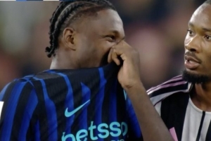 而仅仅6分钟后,马库斯-图拉姆的弟弟凯夫伦-图拉姆头球为尤文图斯扳平比分,接着第91分钟,阿季奇破门绝杀,随后镜头拍到图拉姆兄弟俩用球衣掩住嘴巴,似乎在聊天窃笑,这引发国米球迷的严重不满。