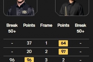 王雨晨打出两杆50+(75、56),杰克·利索夫斯基打出一杆50+(96),最终王雨晨4-1战胜杰克·利索夫斯基晋级32强。