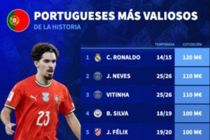 体育资讯12月18日讯 巴黎圣日耳曼首夺洲际杯,加冕六冠王。巴黎阵中多名表现出色的葡萄牙球员是球队夺冠的基石,他们的身价也随之水涨船高。德转统计了葡萄牙历史上身价最高的球员的榜单,毫无意外地,C罗当仁不让位居榜首。