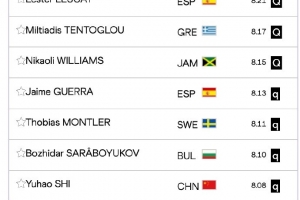 体育资讯9月15日讯 2025年东京田径世锦赛男子跳远资格赛中,石雨豪第二跳跳出8米08,张溟鲲第三跳跳出7米98,两人分别排在资格赛第8和第12,晋级后天晚上的决赛。