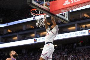 摧枯拉朽!米切尔送妙传 阿伦腾空暴起单臂炸裂劈扣