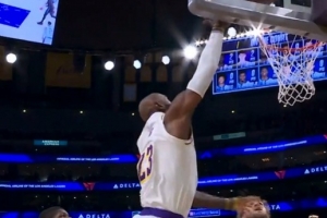 指哪儿打哪儿!詹姆斯三分线外灵犀一指 海斯起飞空接炸筐重扣