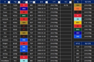 体育资讯1月6日讯 韩网整理了LCK选手年龄表: