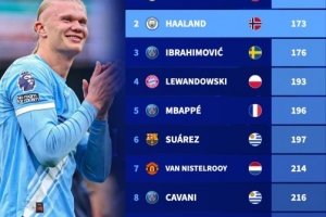 体育资讯1月8日讯 1-1战平布莱顿的比赛,曼城射手哈兰德打进1球,这让他在俱乐部的进球数达到150球。德国转会市场盘点了5大联赛最快达成150球里程碑的球员,C罗149场居首,哈兰德173场次之。