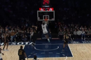 神仙手感!雷诺对抗被顶飞出底线 篮板后失衡超级高抛空心射进2+1