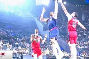 一看分差30+!波尔津吉斯和普理查德争抢篮球 笑哈哈互不相让