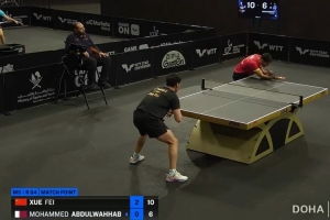 体育资讯1月16日讯 WTT多哈球星挑战赛男单,薛飞3-0战胜阿卜杜勒瓦哈卜,晋级32强。