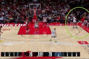 神仙手感!雷诺对抗被顶飞出底线 篮板后失衡超级高抛空心射进2+1