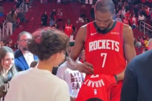 GIF-杜兰特赛后与对手、队友、球迷互动