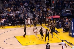 杰弗森:库里在场边一直站着为队友加油 他说一坐下就会感到疼痛