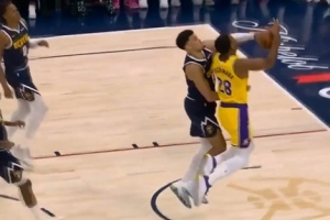 GIF-八村塁反击被斯潘塞·琼斯帽掉,裁判吹掘金球权,湖人挑战失败