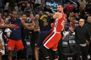谈及比赛末段与湖人球员范德比尔特的冲突,祖巴茨说道:“我只是在保护自己的肩膀。有人拽了我的肩膀,我必须保护好自己。”