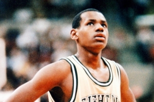 “但我会说,我不确定。我的意思是,我在场上完成一些我本不应该做到的事情。因此当时我就觉得自己很不一般。然后大概在8年级的时候,我去奥兰多参加一项AAU全国锦标赛。我们队有我和其他6个孩子,都来自俄亥俄州东北部地区,其中大部分人来自阿克伦,可能有4人来自阿克伦,3个孩子来自克利夫兰、布雷克斯维尔地区。我们参加了这项大型全美AAU锦标赛,当时有120多支球队在奥兰多的世界体育中心展开角逐,我们最终取得了第二名。我哥们就说,‘你们拿了第二名高兴吗?’‘高兴啊!’6、7名来自俄亥俄州阿克伦市的孩子,我们输给了一支来自南加州的球队。在那届锦标赛中,我在做到一些前一年夏天我从没做到过的事情,我终于开始在比赛中完成扣篮,我们开始赢下一些本不被看好赢下的比赛。我在场上完成一些一两周前还在梦想做到的动作。我心里就想,‘靠,这一切正在发生。’我觉得就是那时候吧。”