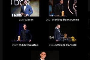 体育资讯9月19日讯 2025年金球奖颁奖典礼将于9月22日当地时间周一晚上举行(北京时间周二凌晨),地点是巴黎的夏特莱剧院。今天,金球奖官方回顾了历届雅辛奖得主。