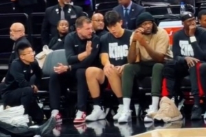 杰弗森:库里在场边一直站着为队友加油 他说一坐下就会感到疼痛