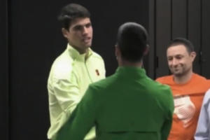 赛后现场采访,德约谈到决赛的对手阿尔卡拉斯,他表示:“阿尔卡拉斯比赛后我见到了他,他告诉我:‘很抱歉推迟了你这场比赛的开始时间。’我跟他说:‘我是个老头儿,我得早点睡……’我期待过几天与他的比赛。”